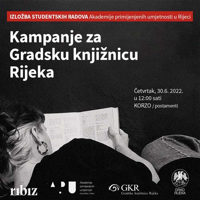 Izložba Kampanje za Gradsku knjižnicu Rijeka nastala je u okviru projekta RIBIZ u akademskoj godini 2021./2022. RIBIZ je projekt kojim se promiče suradnja APURI-a i organizacija iz profitnog i neprofitnog sektora Primorsko-goranske županije.