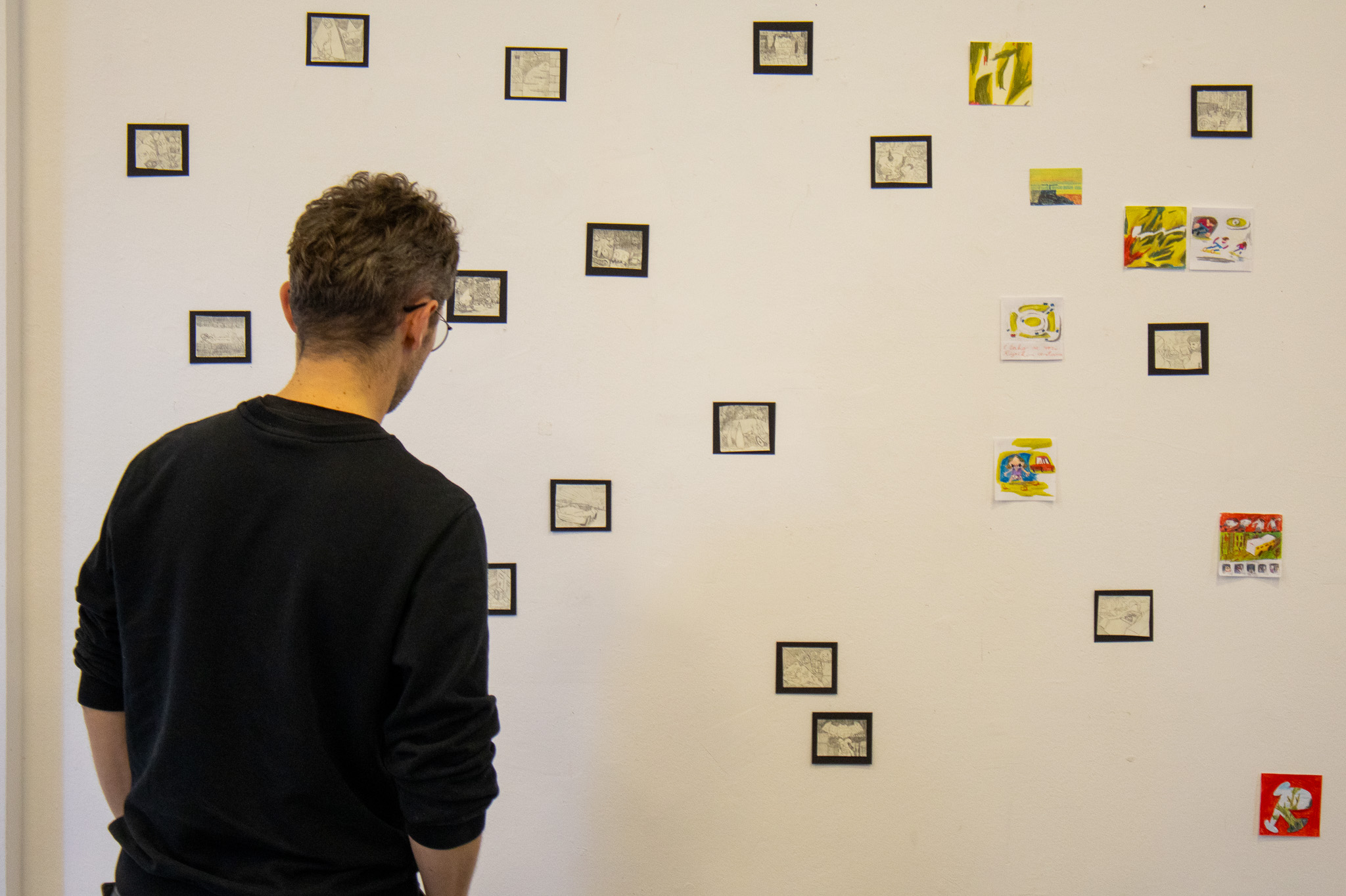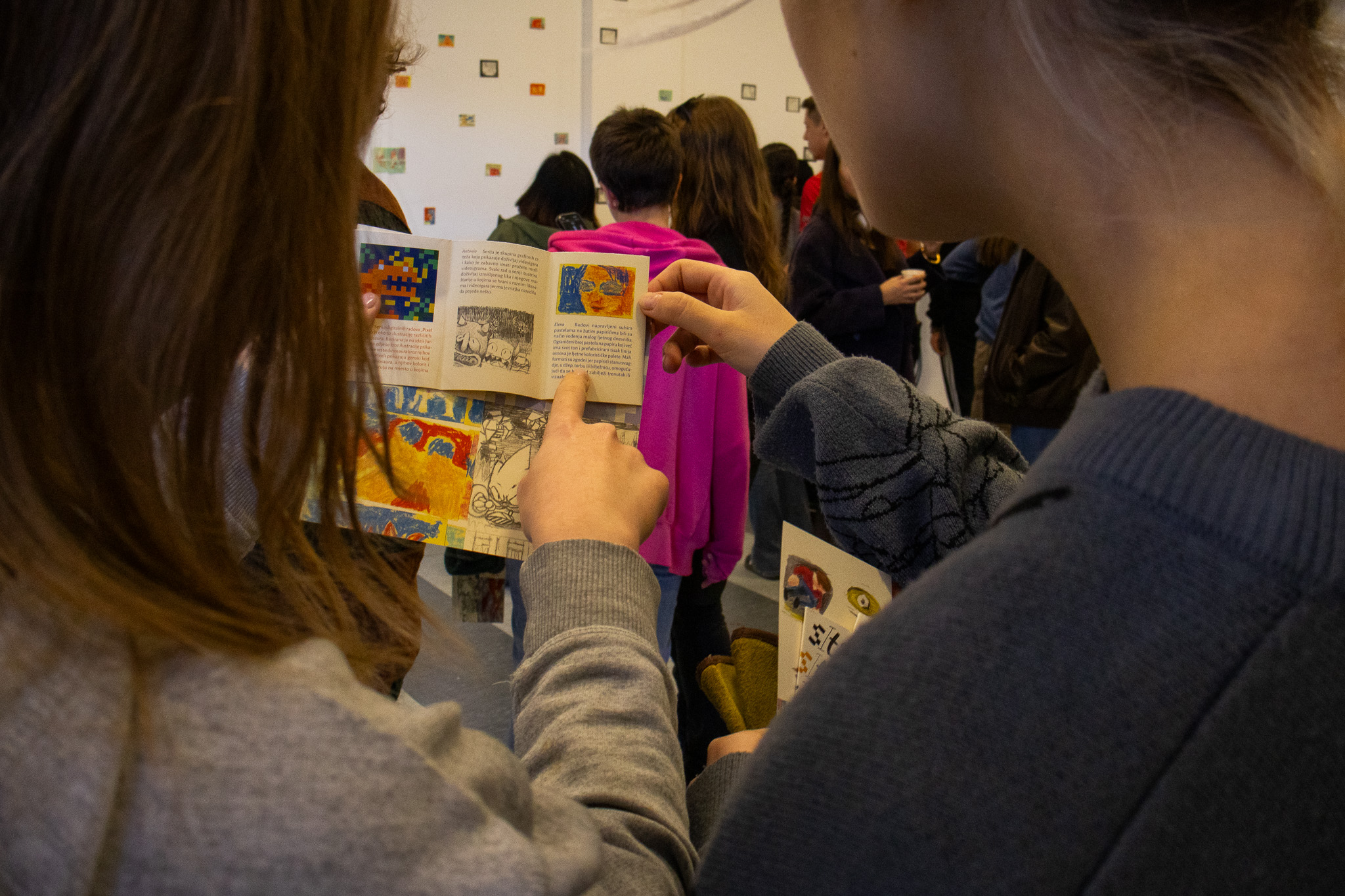Izložba „Sitnice“ okuplja radove četvero mladih autora – Bruno Dorkić, Antonio Vranjić, Nika Mušnjak i Elena Kiss – koji kroz različite medije istražuju intimne vizualne bilješke i male formate. Od digitalnih piksel ilustracija dinosaura, preko grafitnih crteža inspiriranih svijetom videoigara, do spontanih skica i pastelnih dnevnika na žutim papirićima, izložba otvara prostor za promišljanje o vrijednosti „sitnica“ u umjetničkom procesu. Svaki rad nosi osobnu priču, ali zajedno tvore mozaik ideja koje nastaju iz svakodnevnih trenutaka i pretvaraju se u vizualne svjetove.
