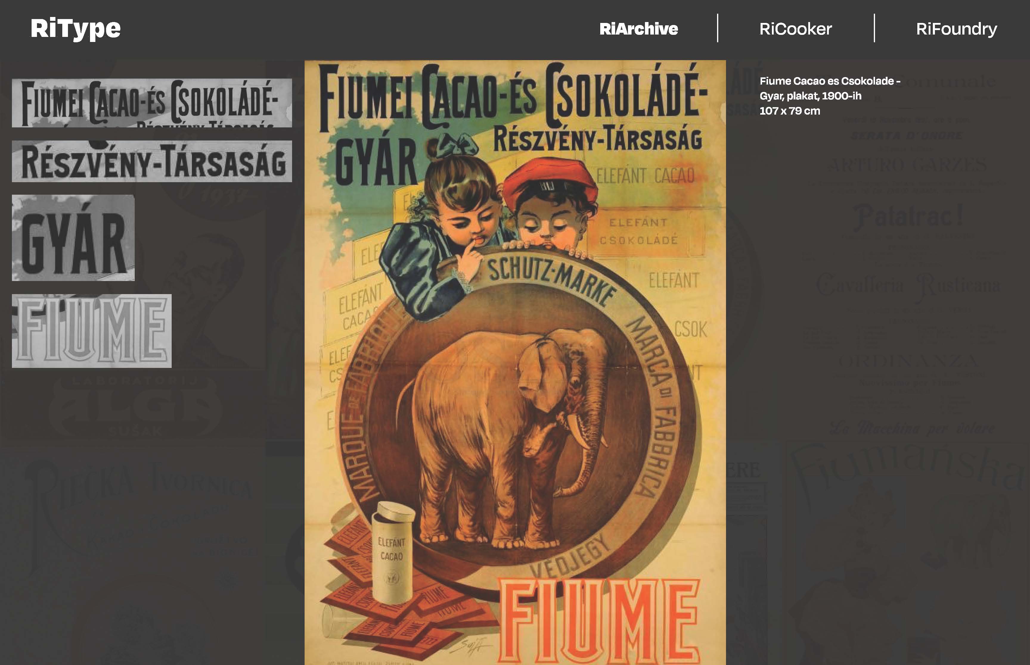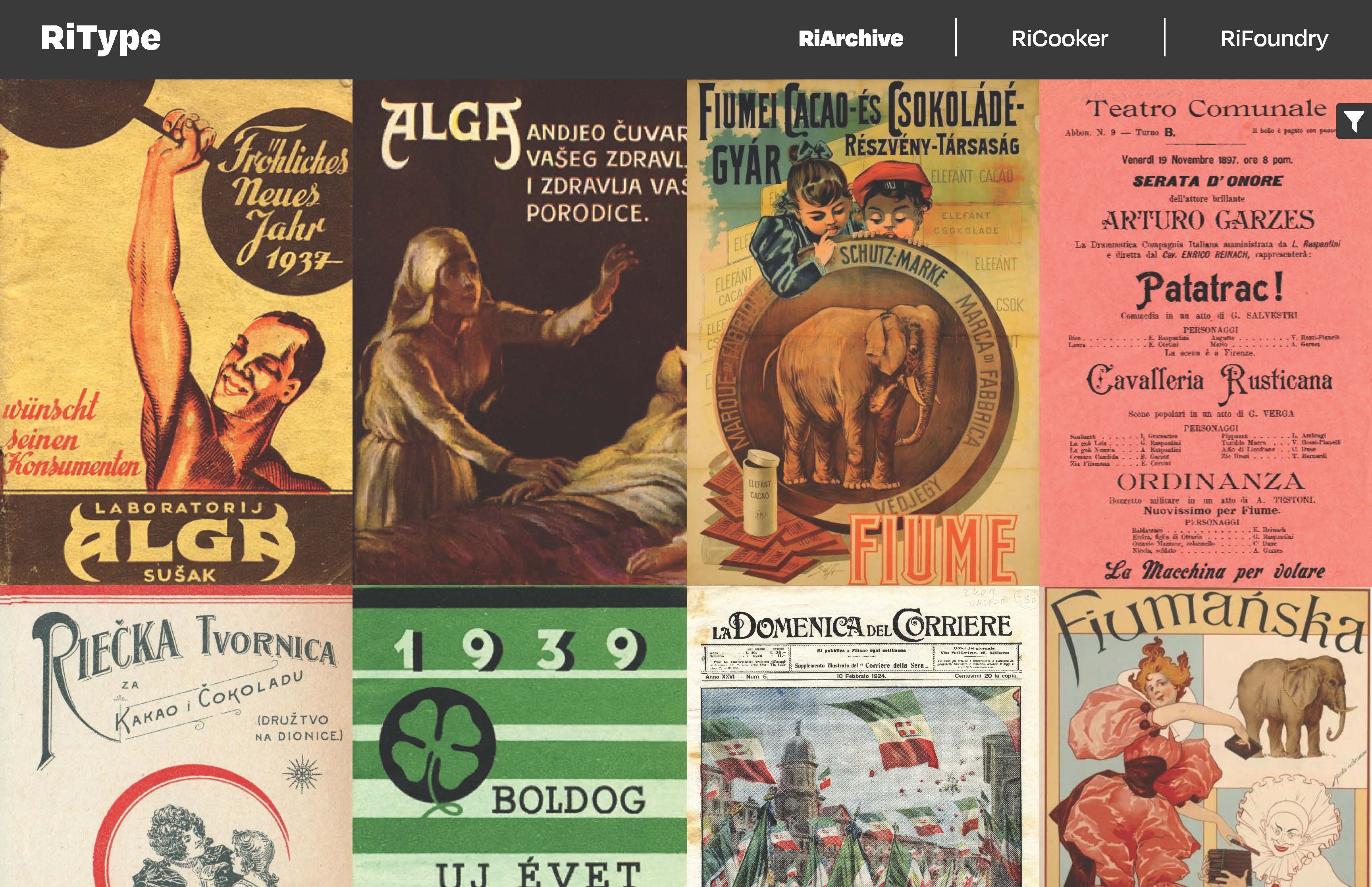 RiArhive - arhiva grafičkih proizvoda iz riječke prošlosti koji su tako reći zaboravljeni. Naglasak je na tipografiji, tako da će na webu biti prikazani i cijeli proizvodi i istaknuta tipografija sa istih proizvoda, koja će biti kategorizirana po nekim tipografskim obilježjima.