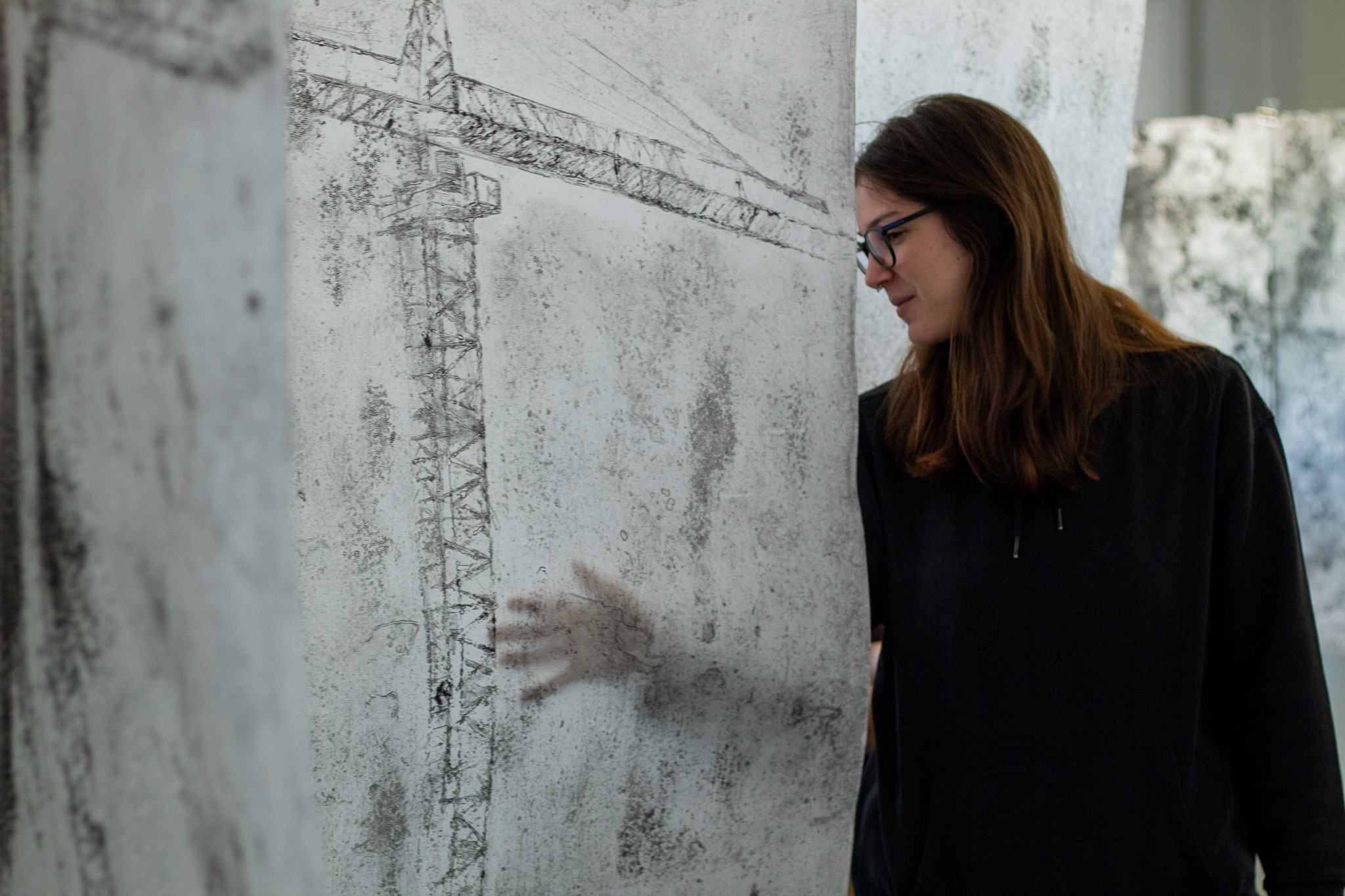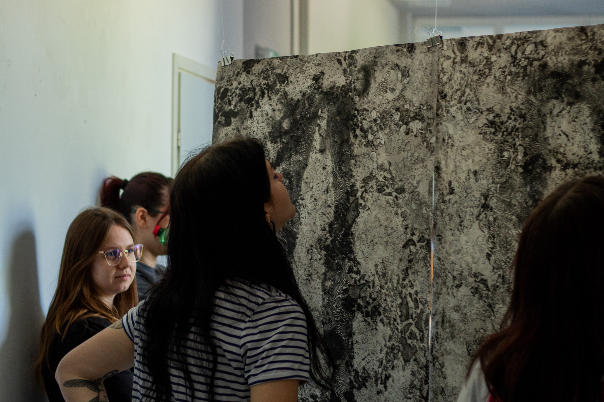 U sklopu edukativnog programa „Učionica na otvorenom: Grafika na kvadrat“, na Akademiji primijenjenih umjetnosti u Rijeci, u utorak, 21. travnja 2026., održano je predstavljanje radova studentice Valentine Bujanić. Kroz radove nastale na kolegiju Oblikovanje umjetničkih knjiga B (mentorica izv. prof. dr. art. C. Vičević), autorica Valentina Bujanić provela nas je kroz procese istraživanja tragova trošenja i slojevitosti u radu s različitim materijalima u mediju grafike. Autorica je otkrila ne samo likovno-tehničke izazove, već i one nevidljive, unutarnje procese koji je oblikuju kao osobu kroz umjetničku praksu. Stvorila je specifičan prostor i prikazala intimne introspektivne momente, koristeći vizualne motive ceste i krana kao metafore za vlastito sazrijevanje. Predstavljeni radovi pozivaju na ulazak u prostor u kojem promatranje postaje čin oblikovanja, u čemu je publika aktivno sudjelovala. Program „Učionica na otvorenom: Grafika na kvadrat“ služi kao platforma za razmjenu iskustava i vidljivost studentskih radova izvan klasičnih okvira nastave te je usmjeren na transformativnu moć umjetnosti da mijenja pojedinca i društvo.